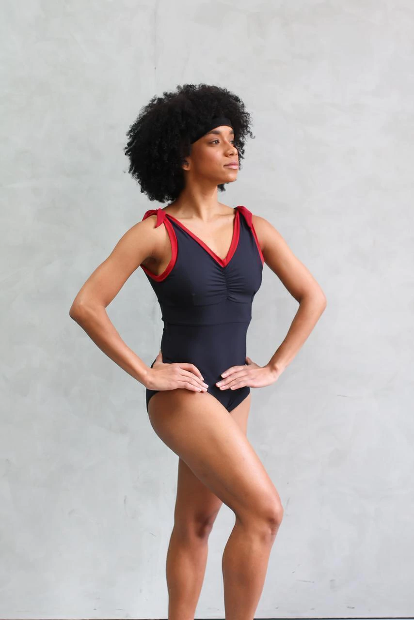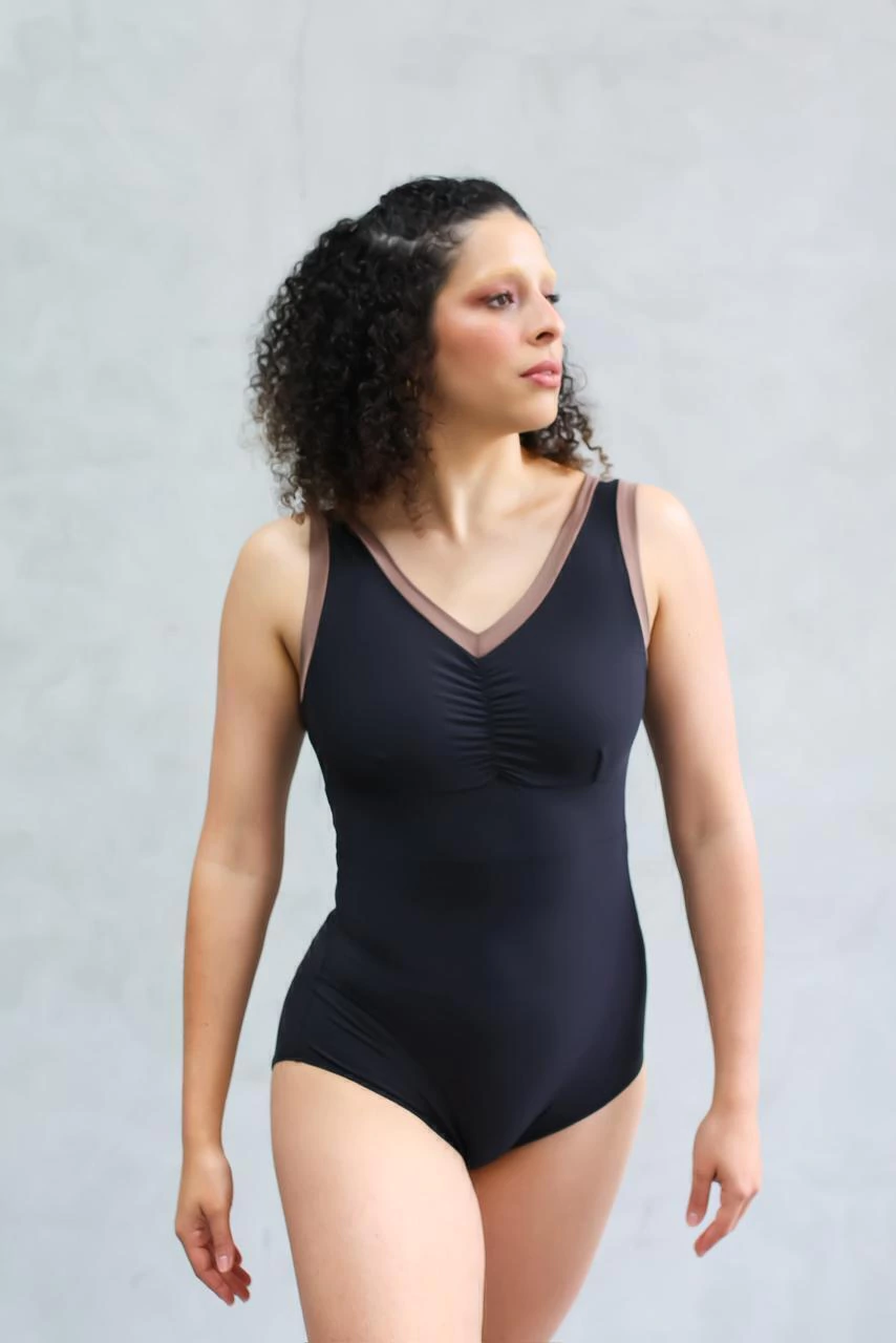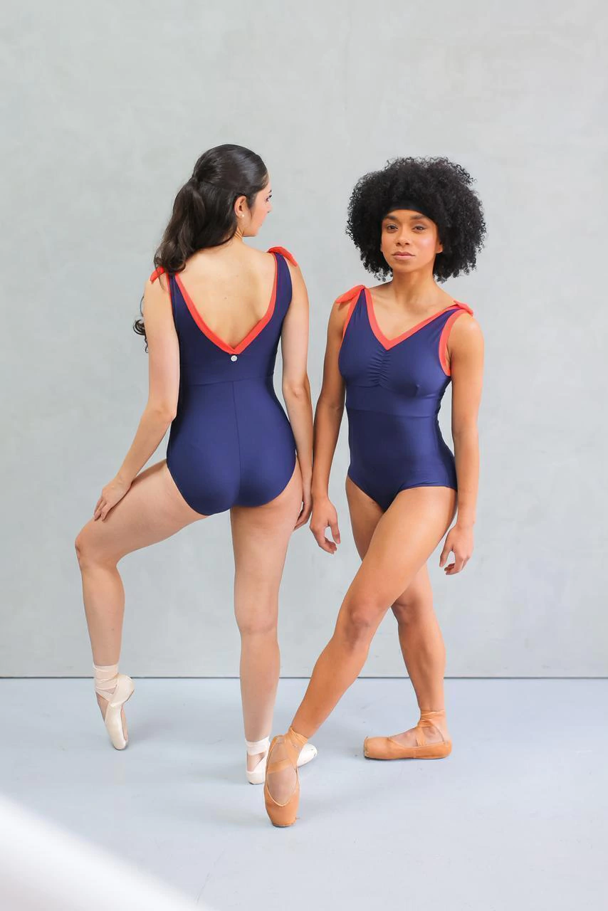 O Collant Marie possui uma modelagem muito confortável, porém com detalhes que agradam bailarinas com gostos mais tradicionais. São eles: elástico e costura no bumbum (mas sem apertar), decote em V nas costas, franzido frontal e alças grossas. O detalhe fica por conta do acabamento do viés e do par de lacinhos no ombo que podem ser removidos;