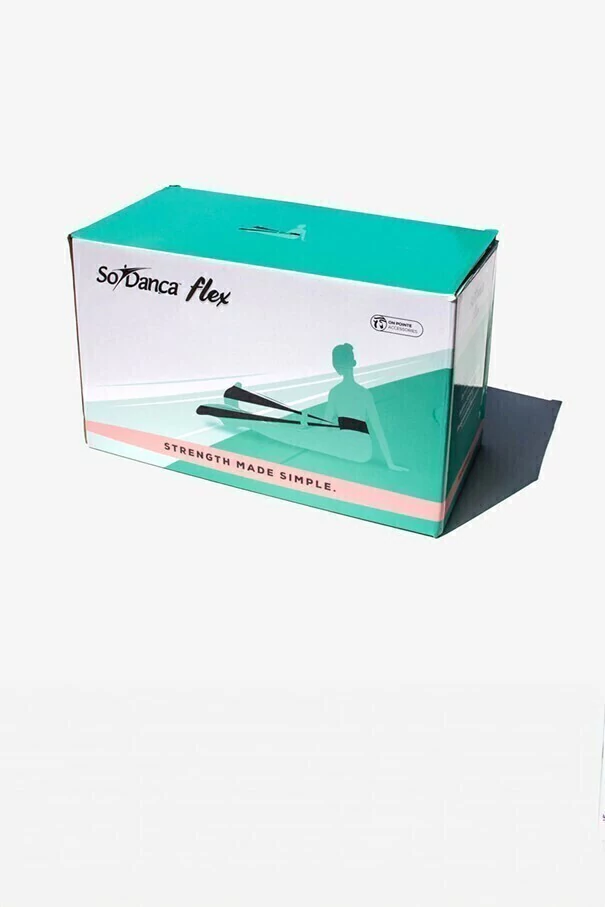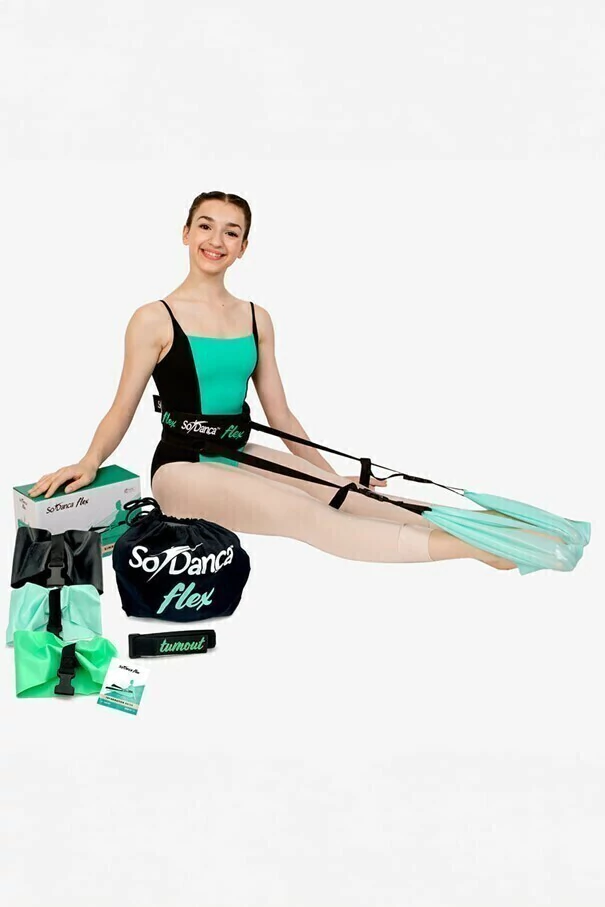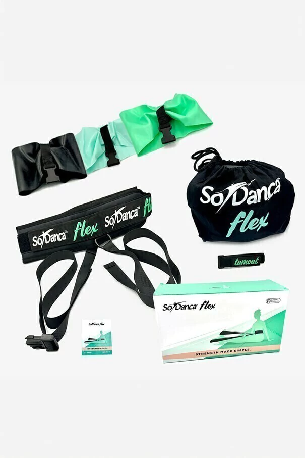 Flex é um dispositivo de fortalecimento de pés e tornozelos que elimina a necessidade dos bailarinos manipularem manualmente o TheraBand. Com um cós ajustável e alças ajustáveis para as pernas, você pode definir o nível exato de resistência desejado, dependendo dos exercícios, comprimento das pernas e flexibilidade. Flex oferece três níveis diferentes de faixas de resistência. À medida que você se fortalece, você pode explorar novas maneiras de exercitar os dedos dos pés, arcos e tornozelos.