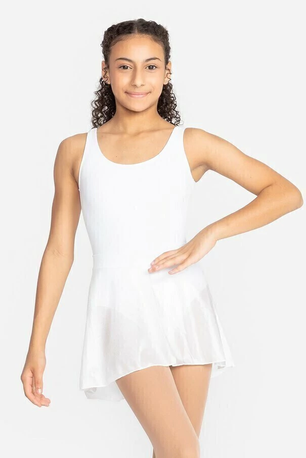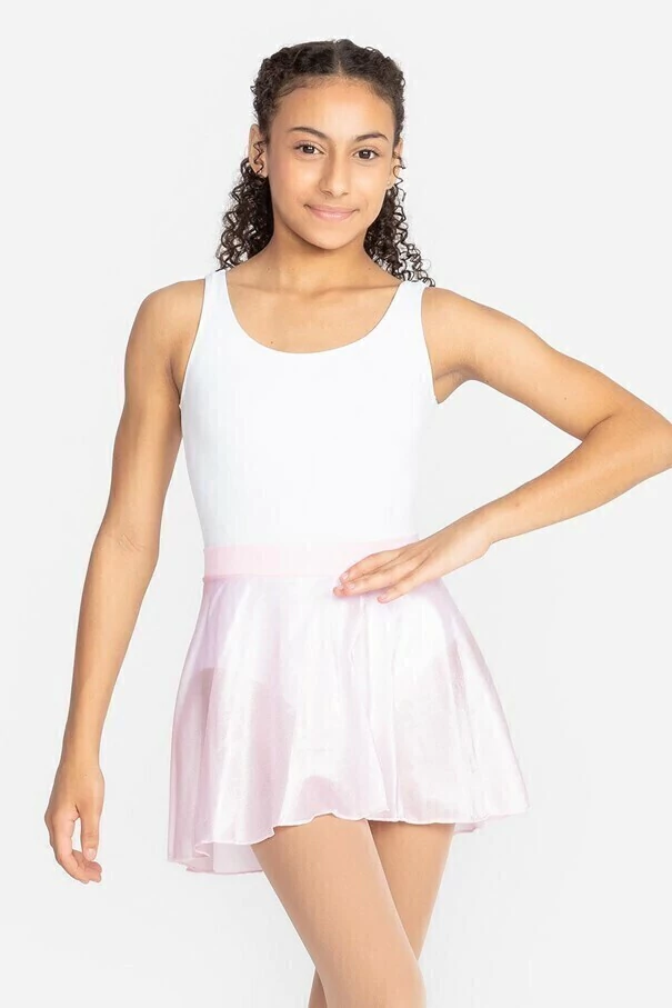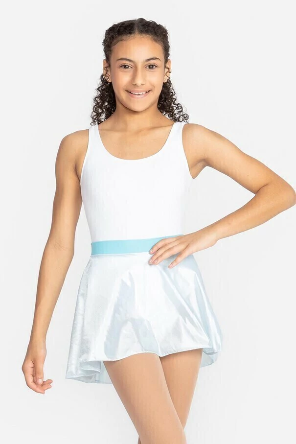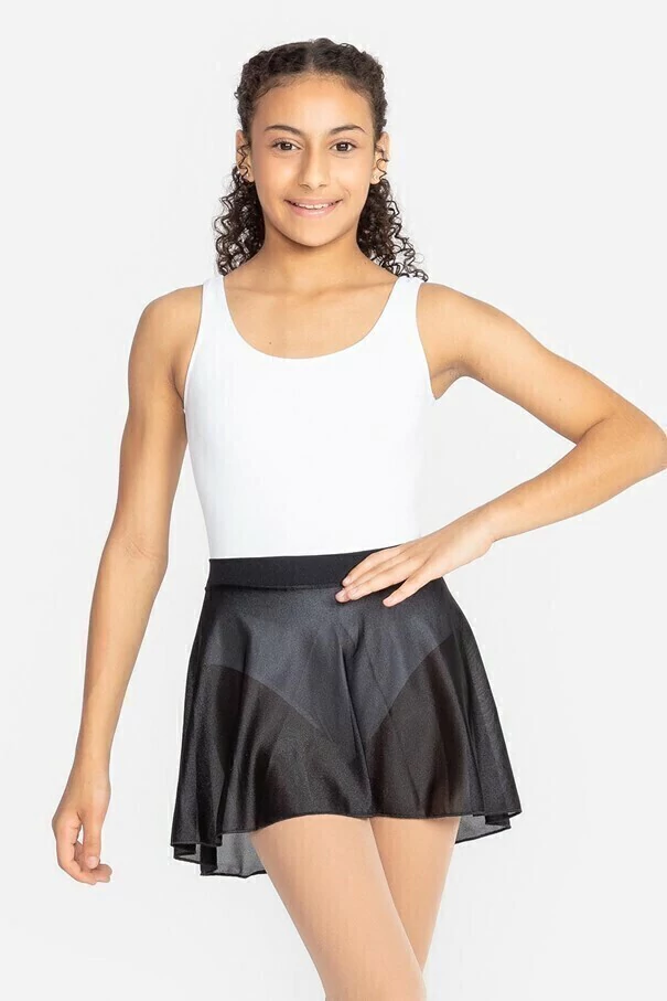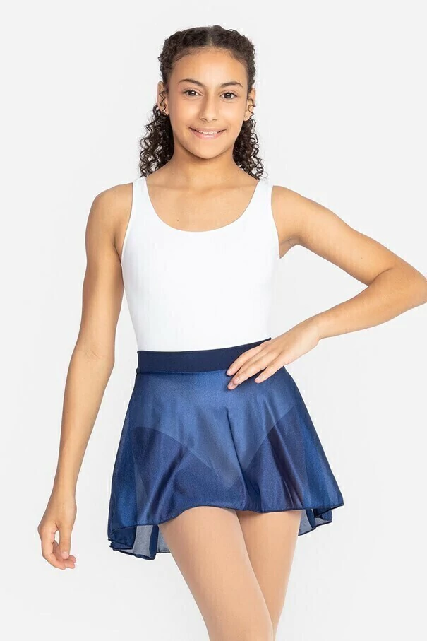 Saia Ballet Infantil, tipo godê, modelo SD-1244, confeccionada em tecido Trilobal, com costas mais comprida e pala dupla em tecido.