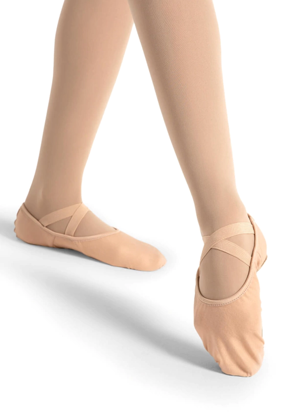 Lona de alta qualidade que estica como se você não estivesse usando nada. O design da sola dividida elimina o volume no arco e permite que gire na plataforma mais plana. Não possui nenhuma costura no arco/centro que interfira na dorsiflexão e flexão plantar. Recomendada para bailarinos iniciantes e experientes.
